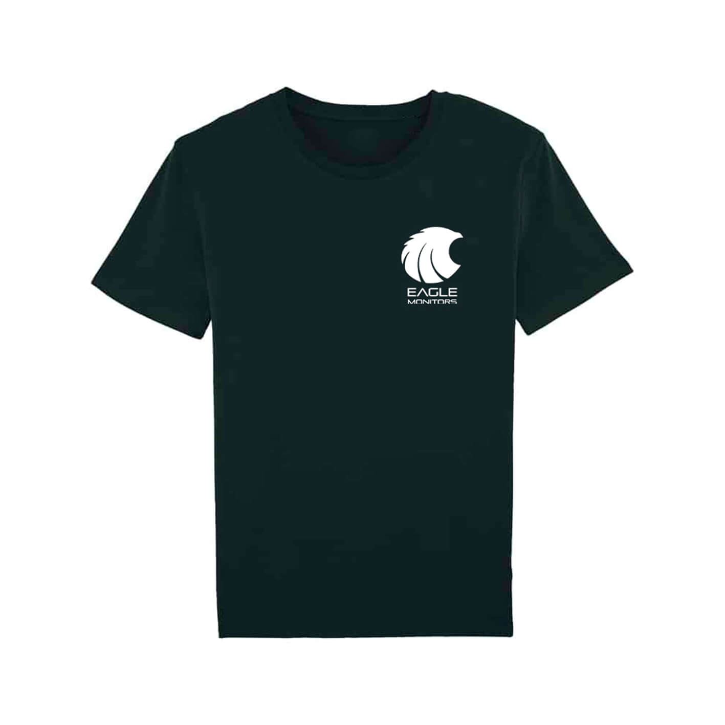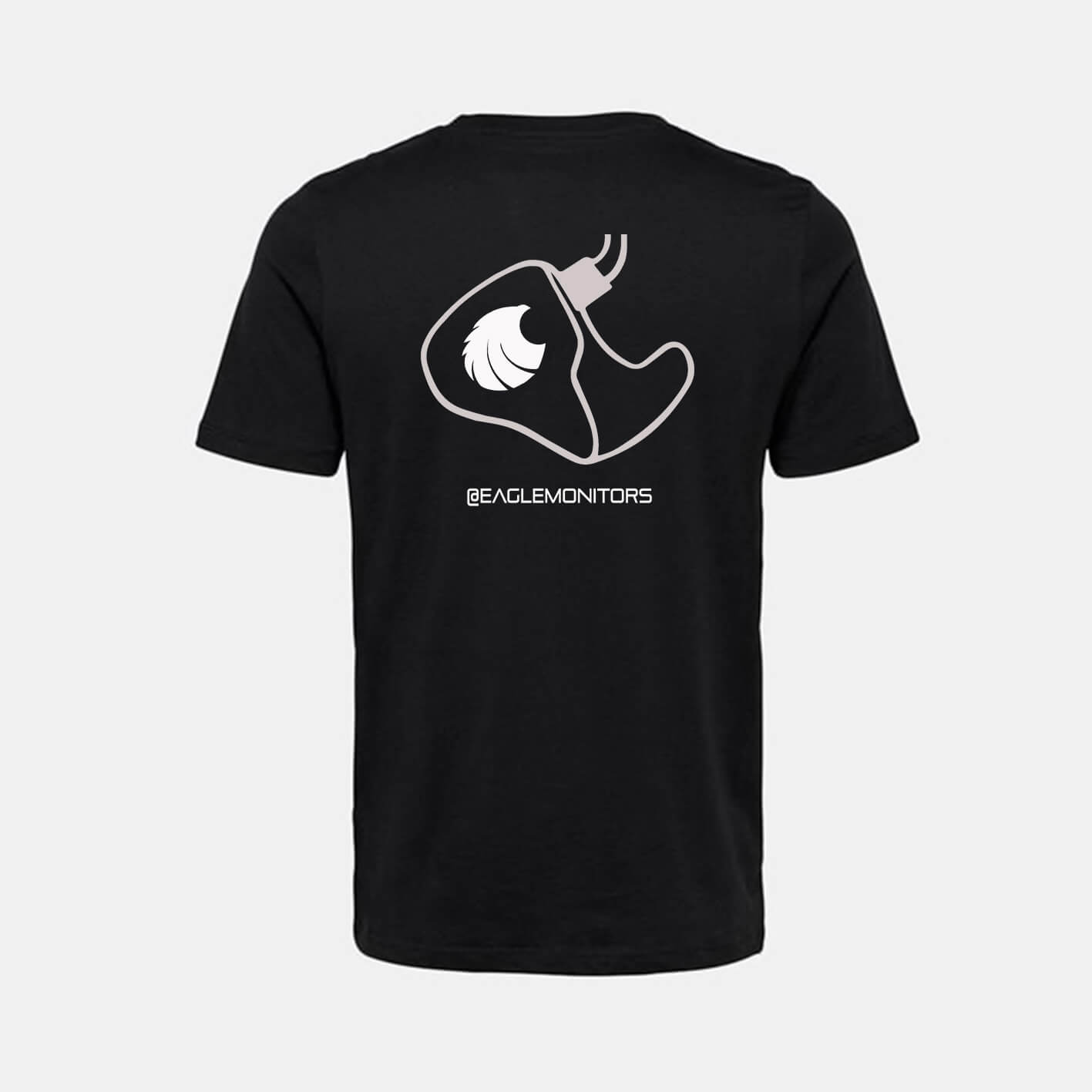 Polera de algodón cuello redondo con diseño estampado blanco y negro en espalda y pecho.